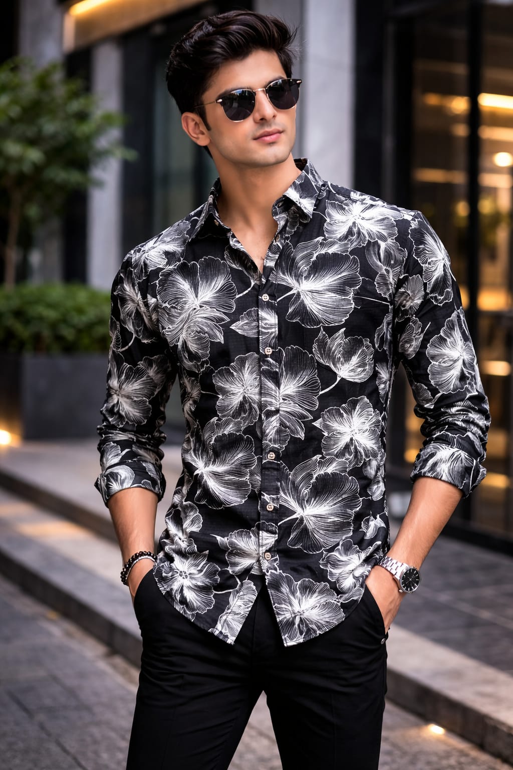 Premium Black Floral Printed Shirt for Men | Stylish Slim Fit Casual & Party Wear